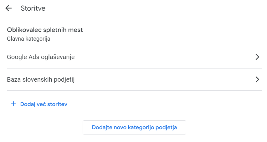 POSTOPEK:Če vaše podjetje še nima GMB profila, ga ustvarimo za vasČe ima vaše podjetje že avtomatično ustvarjen GMB profil, sprovedemo postopek za naš dostop do njegaUreditev GMB profila z vsemi vašimi ažurnimi informacijami in vsebinami (lokacija, kontaktni podatki, delovni čas, logo, fotografije, kratek opis podjetja, dejavnosti)Predaja dostopa do GMB profila, kjer potem lahko tudi odgovarjate na ocene/komentarje strankOPOMBA:V slučajnem primeru, da v navezi z vami ne moremo pridobiti dostopa do že obstoječega GMB profila vašega podjetja (ker je recimo vezan na telefon, ki ga več ne uporabljate in posledično ne morete prejeti kode), naročila ne moremo izvesti in prejmete povrnjen strošek.