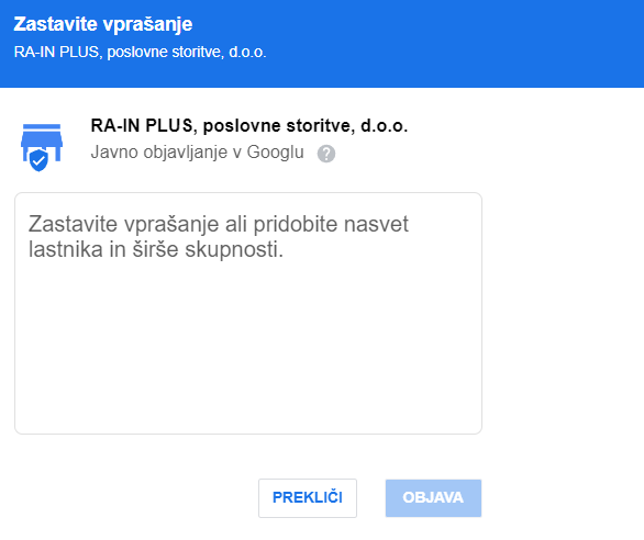 Oddajte povpraševanje za ureditev Google My Business profilaza vaše podjetje