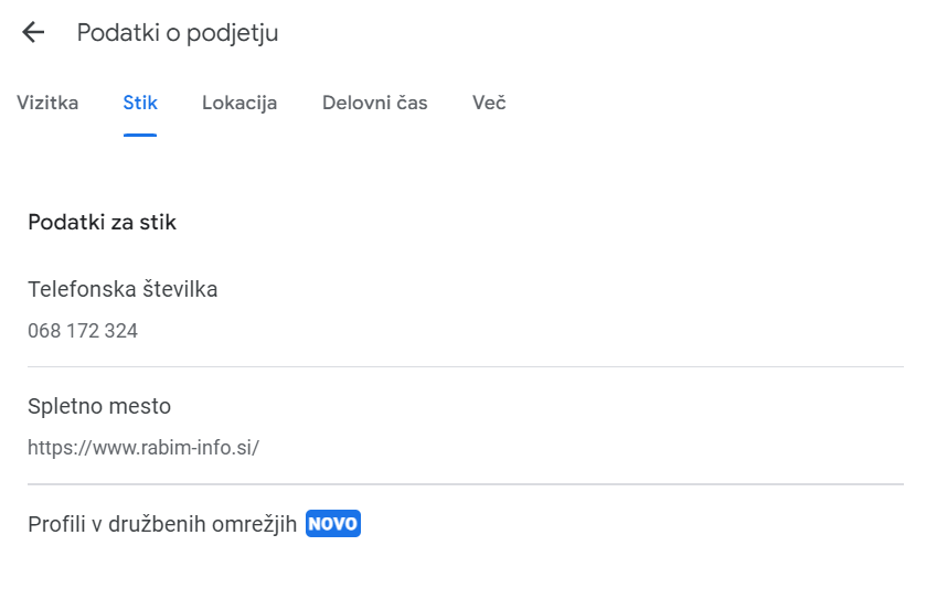 Kaj vse imate na razpolago v Google My Business profilu